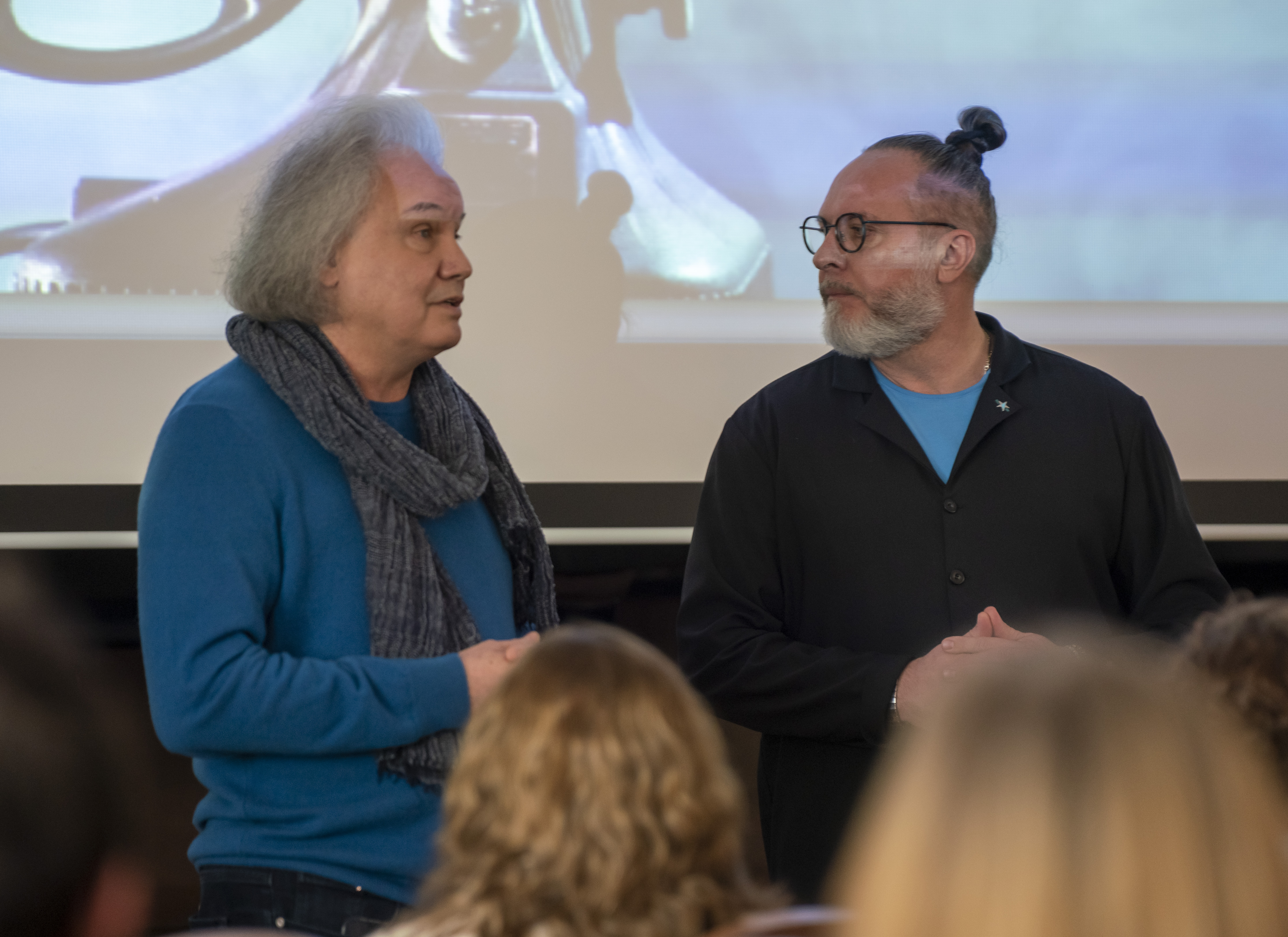 -->В Школе им. Гнесиных представили новое отделение по специальности «Кино- и телепроизводство». Руководитель направления ‒ заслуженный артист России, режиссёр театра и кино, художественный руководитель театра «Модерн», академик кинематографических искусств (НИКА) и академик рекламы РАРА (АКАР) Юрий Грымов.
